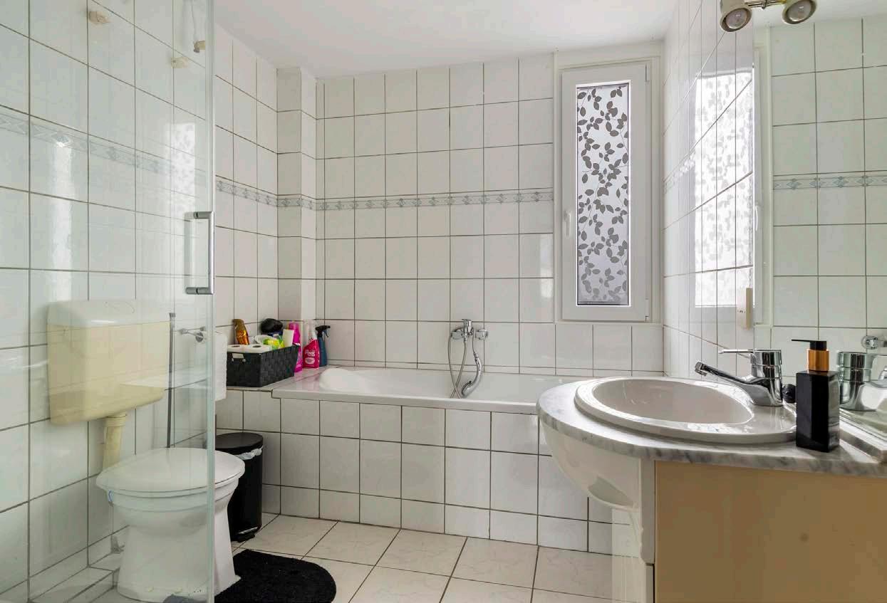 De geheel betegelde badkamer is voorzien van een wastafelmeubel, tweede toilet, douche en een ligbad.