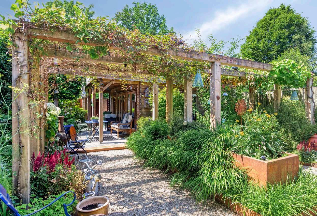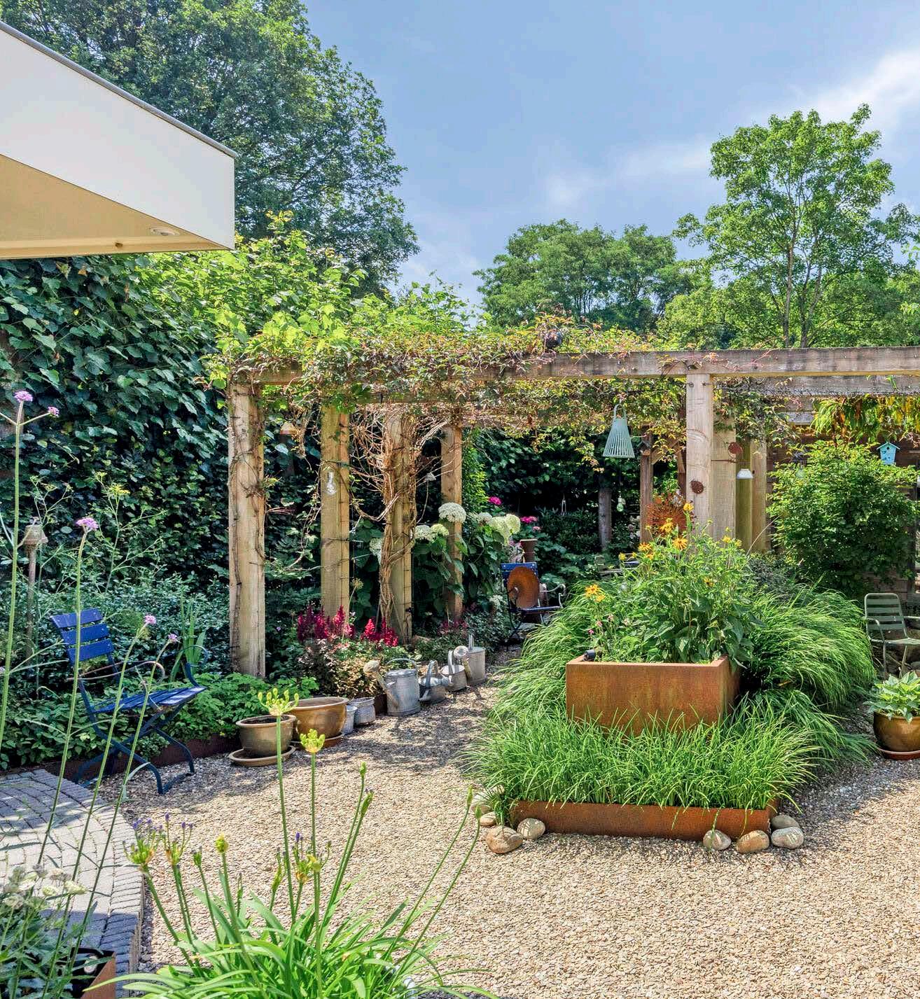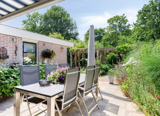 De tuin is een groene oase waar je helemaal tot rust komt. Met meerdere terrassen, zonnige en schaduwrijke plekken, borders vol groen en een sfeervolle pergola, is dit de ideale plek voor zowel ontspanning als speelplezier. De privacy is optimaal, waardoor je ongestoord kunt genieten van buitenleven, barbecue-avonden of een moment voor jezelf.