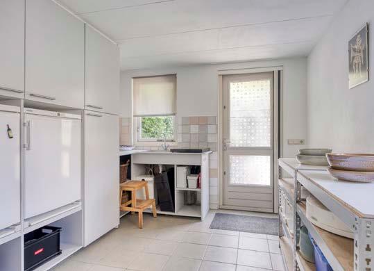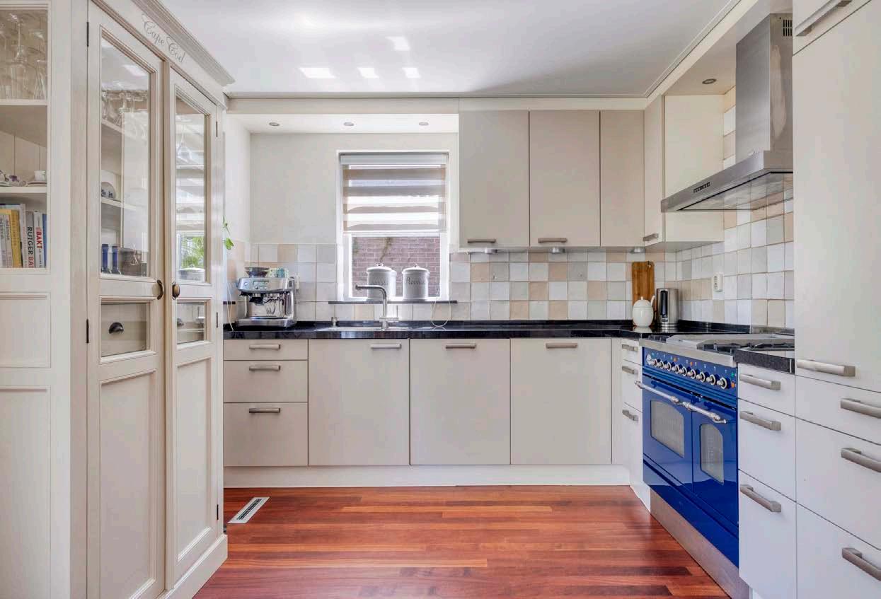 De moderne hoekkeuken is een droom voor kookliefhebbers. Uitgerust met alle benodigde inbouwapparatuur en een indrukwekkend fornuis met dubbele ovens, biedt de keuken voldoende werkruimte om zowel snelle maaltijden als uitgebreide diners te bereiden. Koken wordt hier een plezier, of je nu dagelijks kookt of gasten ontvangt. De schuifpui naar de voortuin zorgt ervoor dat je ook hier kunt genieten van het buitenleven. Er is een bijkeuken met de wasmachine opstelling, heel praktisch!