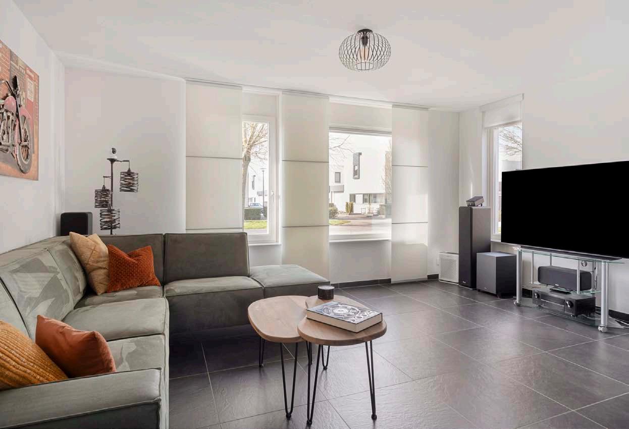 Via de hal bereik je de ruime, gezellige woonkamer. Met ramen aan de voor- en achterzijde geniet je hier de hele dag van natuurlijk licht en uitzicht op zowel de rustige straat als jouw zonnige tuin. Dit is dé plek waar je met vrienden een ontspannen filmavond organiseert of samenkomt voor spelletjes en quality time