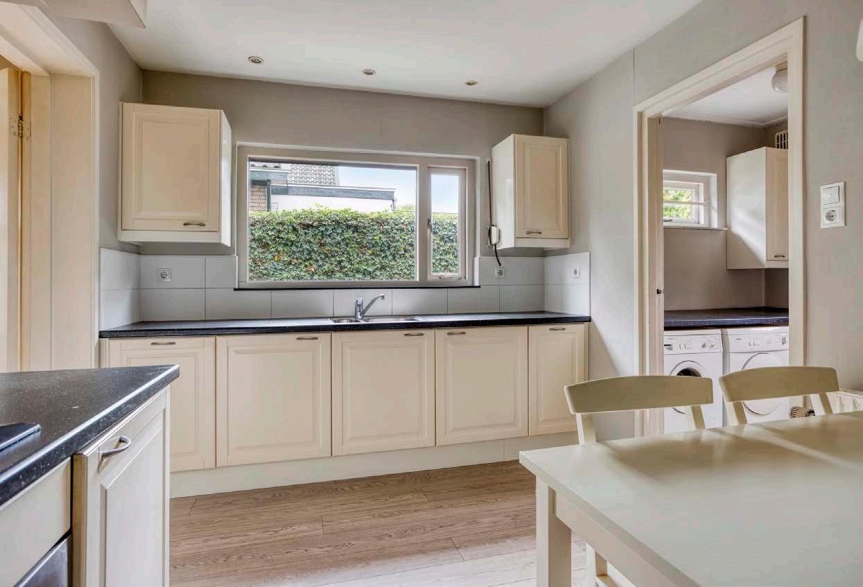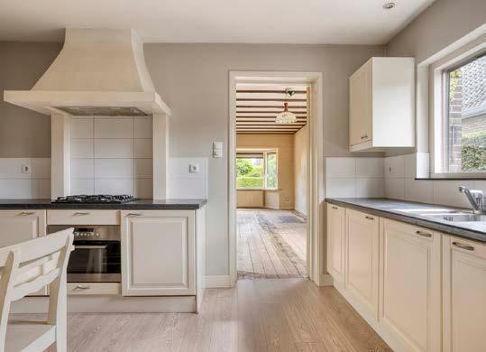 Naast de woonkamer, aan de achterzijde van de woning bevindt zich een functionele en nette keuken met alles binnen handbereik voor het bereiden van heerlijke culinaire gerechten! Vanuit de keuken loopt u via de bijkeuken direct de groene achtertuin in!