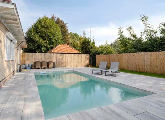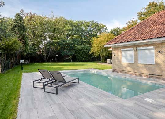 Het verwarmde zwembad vormt een comfortabele aanvulling op deze heerlijke buitenruimte en biedt ruimte voor zowel luxe als ontspanning.