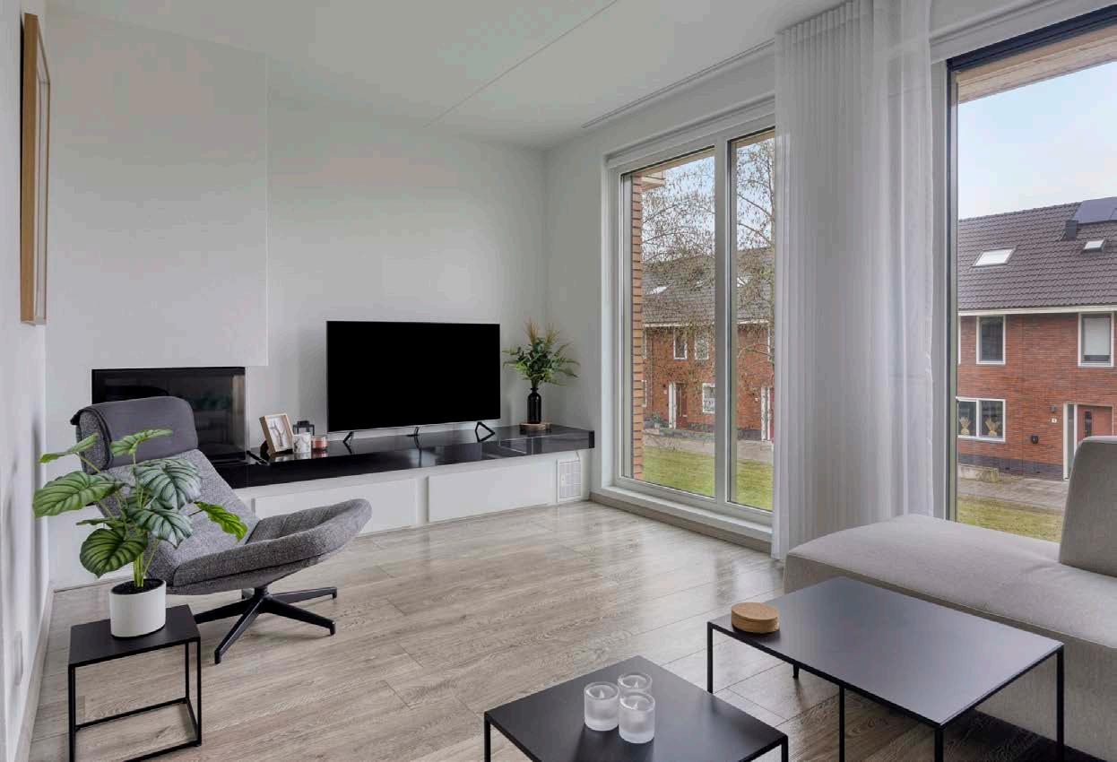 Dit is zo’n huis dat rust geeft, zonder saai te worden. De grote ramen laten veel daglicht binnen, wat zorgt voor een open en ruimtelijke sfeer. Tegelijkertijd voelt de woning voor ons knus en is het een fijne plek om thuis te komen.