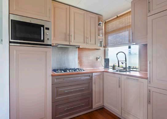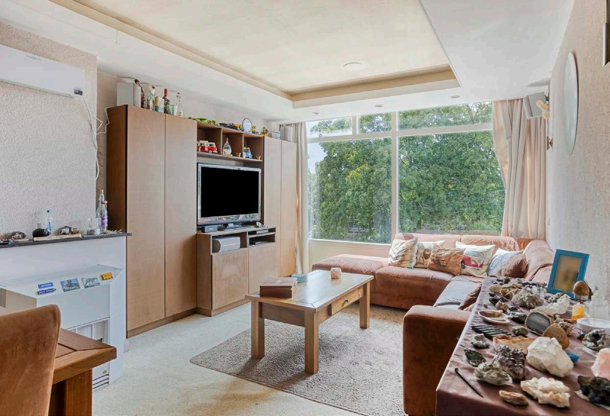 De woonkamer is licht en sfeervol dankzij de grote ramen – perfect om een gezellige zithoek te creëren waar je tot rust kunt komen. Vanuit hier loop je door naar de dichte keuken, waar je beschikt over inbouwapparatuur. Of je nu een snelle maaltijd klaarmaakt of uitgebreid wilt koken, deze keuken is er helemaal klaar voor.