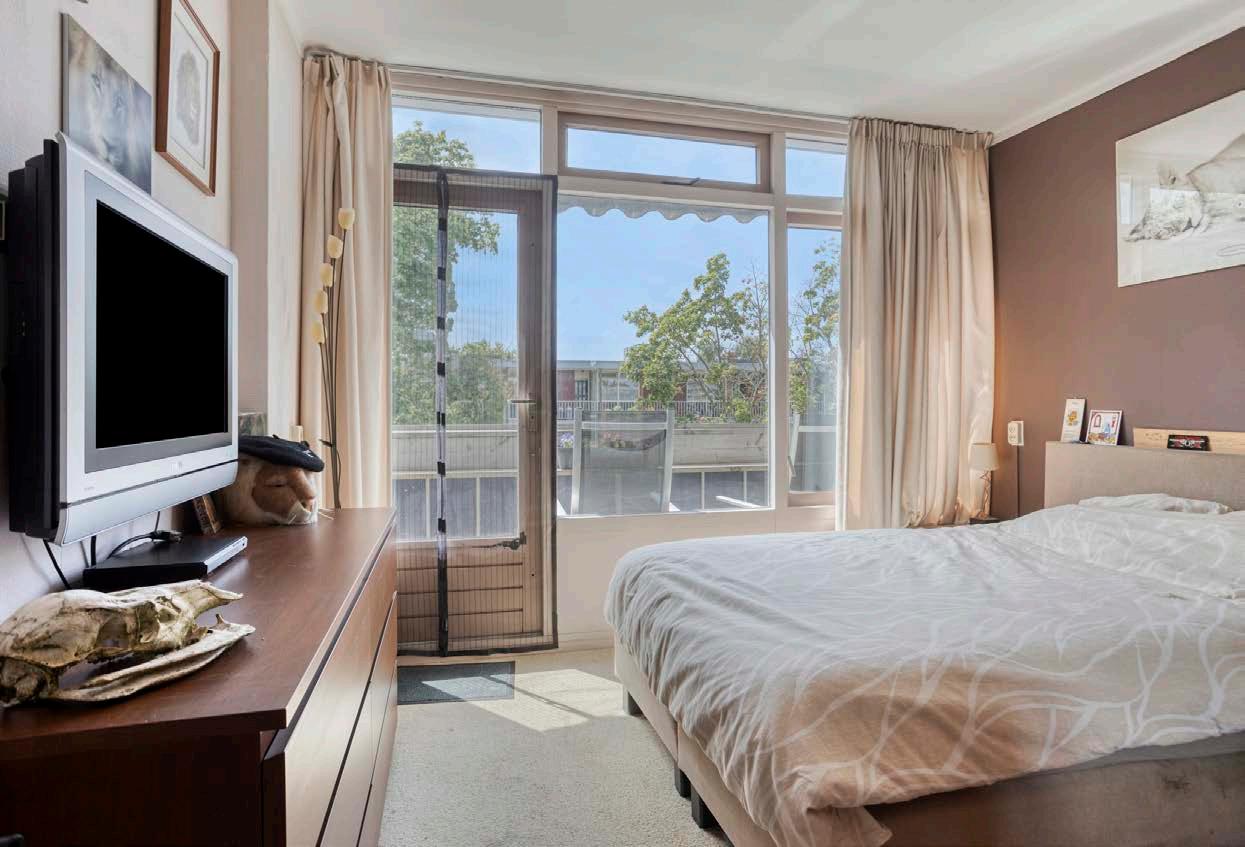 De grootste slaapkamer is ruim opgezet en geeft toegang tot het balkon aan de achterzijde van de woning. Hier kun je op een zonnige middag genieten van een boek of een kop koffie terwijl de zon rustig ondergaat. De tweede slaapkamer is perfect als werkplek, logeerkamer of voor extra opslag – precies wat je nodig hebt, afhankelijk van jouw situatie.