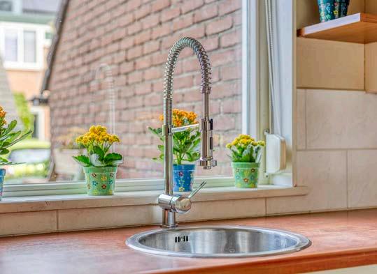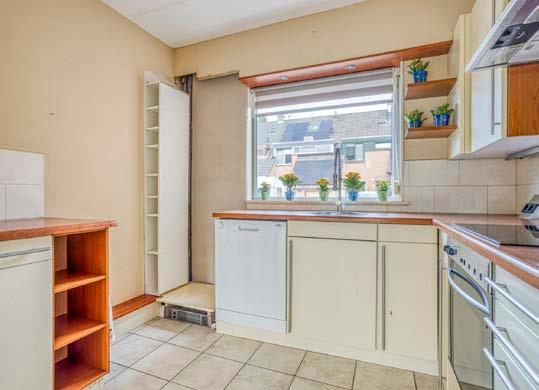 Voor in het huis bevindt zich de halfopen keuken. Van een snelle lunch tot een uitgebreid familiediner: koken in deze keuken is prettig en efficiënt. Vanuit hier kijk je leuk uit op de rustige straat, waardoor je tijdens het koken altijd in contact bent met de omgeving.