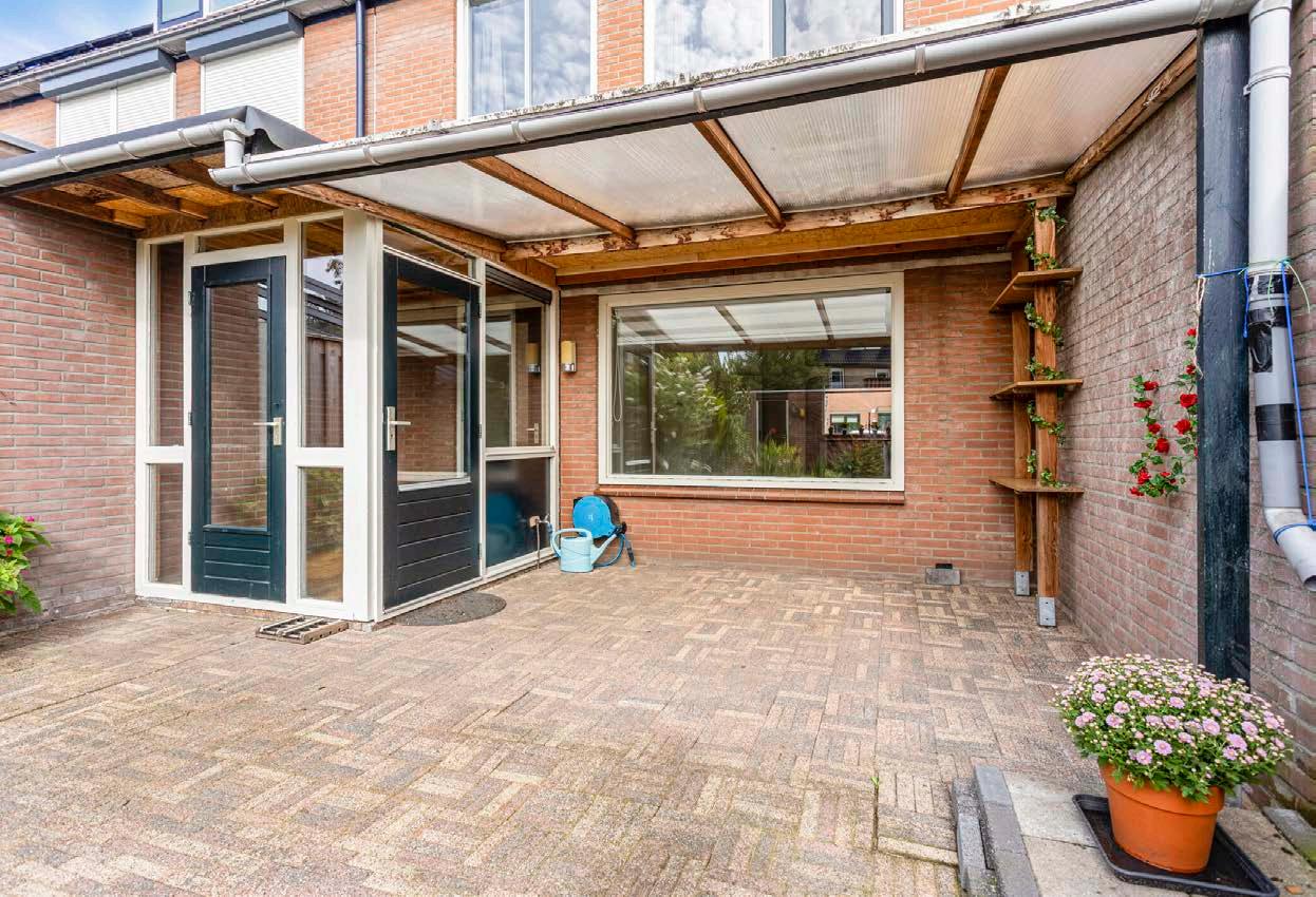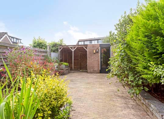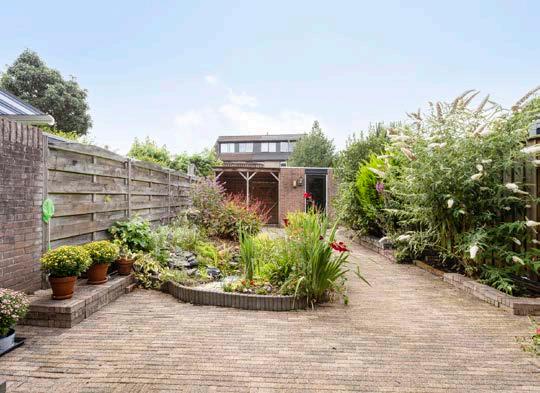 De tuin aan de achterzijde maakt het plaatje compleet. Dankzij de ligging op het zuidoosten geniet je al vanaf de ochtend van de zon. Het terras biedt genoeg ruimte voor een tuinset of loungehoek waar je heerlijk kunt ontspannen of bijvoorbeeld een kopje koffie kunt drinken in alle rust. Onder de overkapping kun je zelfs op wat koelere dagen buiten zitten, en de berging achterin de tuin biedt genoeg praktische opbergruimte voor fietsen, gereedschap of tuinmeubilair.