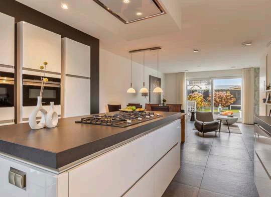Toen we destijds de indeling van onze nieuwbouwwoning naar believen aan konden passen hebben we daar gretig gebruik van gemaakt. In plaats van veel loze loopruimte hebben we daardoor een ruime slaapkamer met en-suite badkamer en sauna kunnen realiseren. En door de spiegelvijver in het verlengde van de schuifpui van de slaapkamer aan te leggen is het elke ochtend heerlijk wakker worden. Door daarnaast de voorramen een aantal centimeter op te laten schuiven was er ineens plaats voor onze droomkeuken.