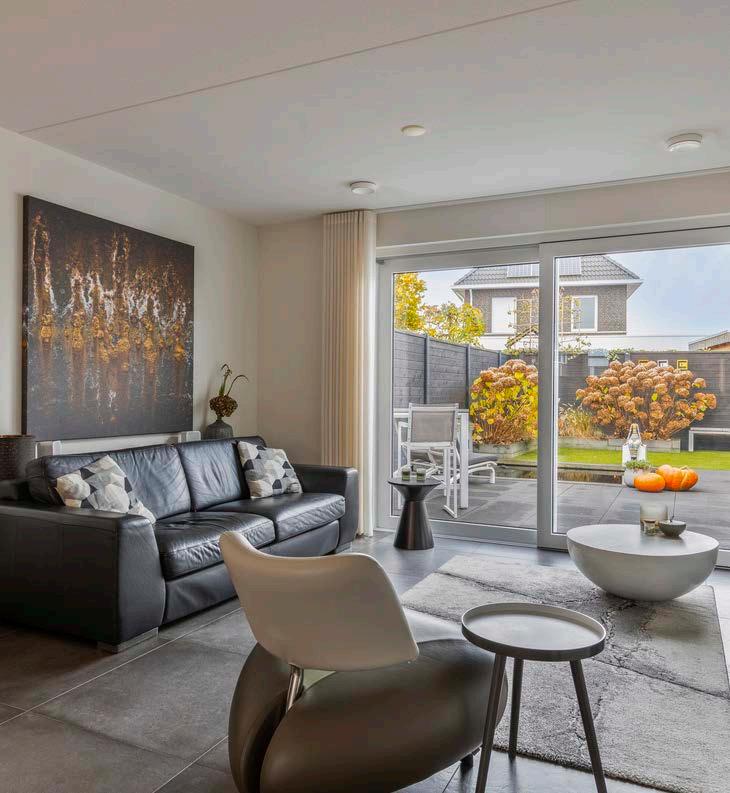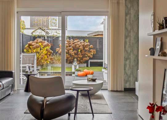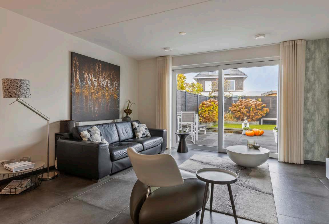 De woonkamer is het kloppend hart van deze woning. Dankzij de grote schuifpui stroomt het natuurlijke licht royaal naar binnen, waardoor de ruimte altijd helder en uitnodigend aanvoelt. Het directe tuincontact zorgt voor een naadloze overgang tussen binnen en buiten, ideaal voor gezellige avonden met vrienden of ontspannen momenten met een boek. De indeling biedt volop mogelijkheden voor diverse opstellingen, waardoor je de ruimte helemaal naar eigen smaak kunt inrichten.
