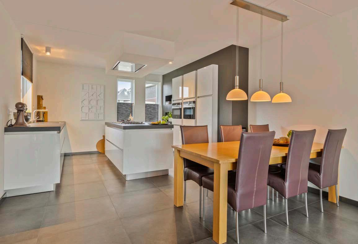 Deze keuken is een droom voor elke kookliefhebber. Uitgerust met een stijlvol kookeiland en voorzien van de nieuwste luxe apparatuur, is dit de perfecte plek om culinaire hoogstandjes te creëren. De open indeling zorgt ervoor dat je tijdens het koken altijd deel blijft uitmaken van de gezelligheid. Of je nu een eenvoudig diner bereidt of een uitgebreid feestmaal, hier kook je met gemak en stijl.