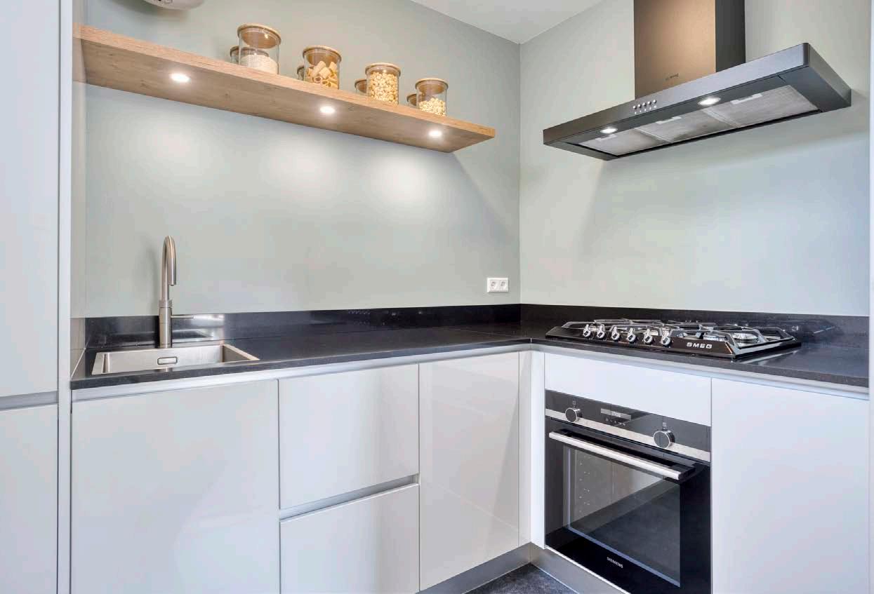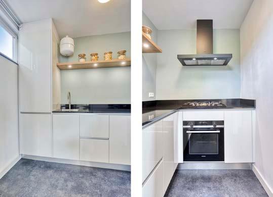De keuken bevindt zich aan de achterzijde van de woning.