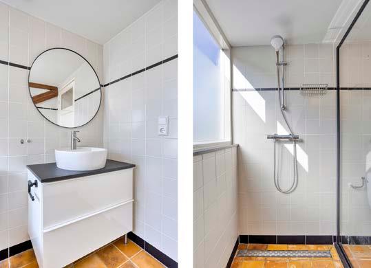 De badkamer is voorzien van een inloopdouche.