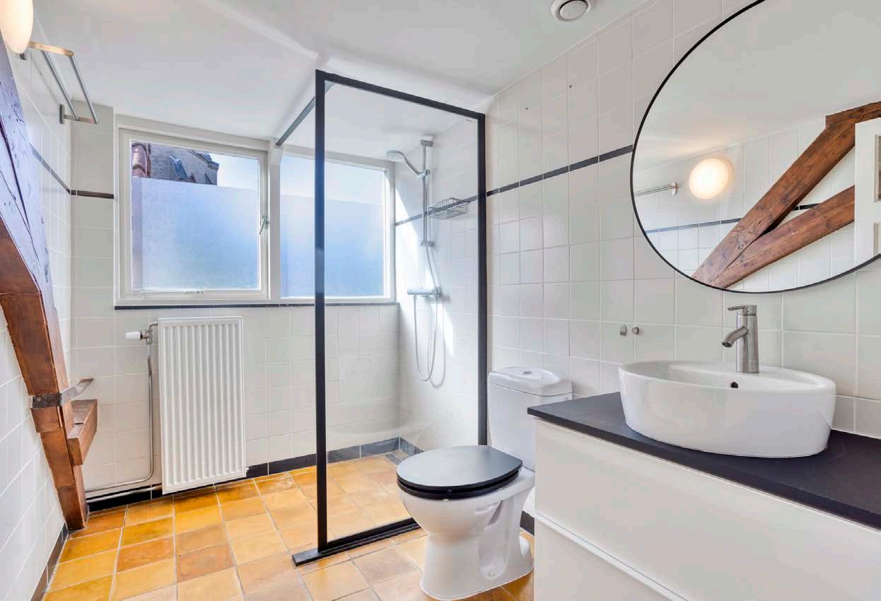 Op de bovenste verdieping is er ook een gezellige sfeer door de houten balken die zichtbaar zijn. Deze karakteristieke elementen komen boven overal terug.