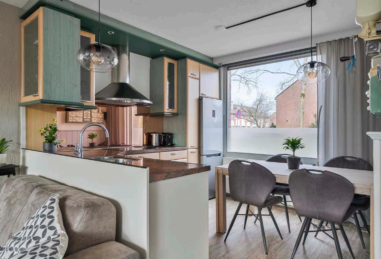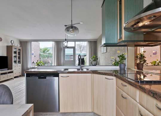 Uitgerust met inbouwapparatuur, zoals een 4-pits inductiekookplaat, een apothekerskast, koelkast en vaatwasser, biedt deze keuken alle gemakken die je nodig hebt. Het granieten aanrechtblad is niet alleen luxe, maar ook duurzaam en gemakkelijk schoon te houden.