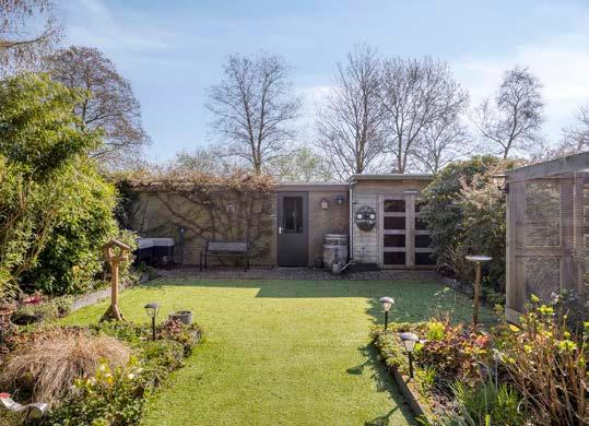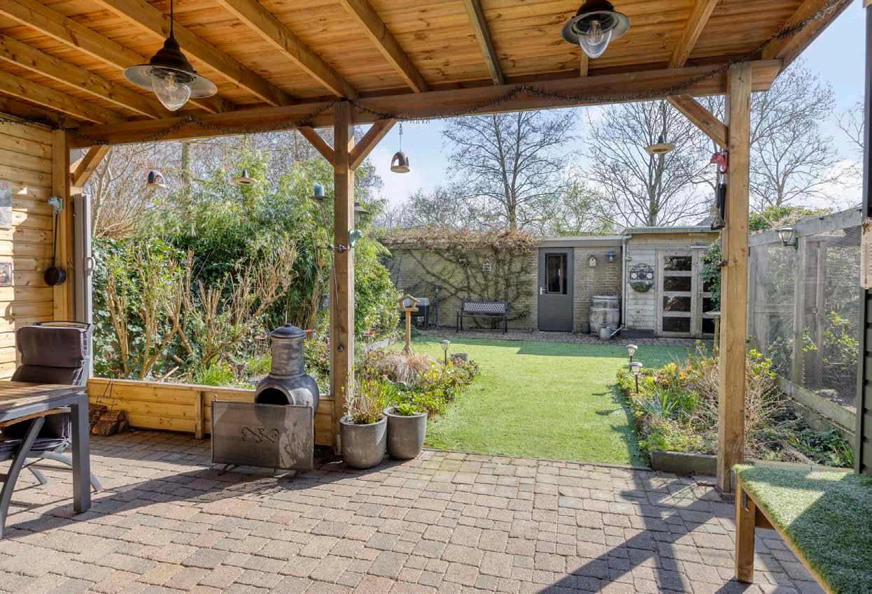 Ook buiten is het genieten. De tuin op het zuidwesten biedt veel privacy en heeft een mooie schutting, een tuinhuisje en een veranda waar we veel tijd hebben doorgebracht. De kipjes en vissen maakten het buitenleven extra gezellig! Door de extra ruimte naast het huis is er bovendien plek voor hobby’s, logees of werken aan huis.