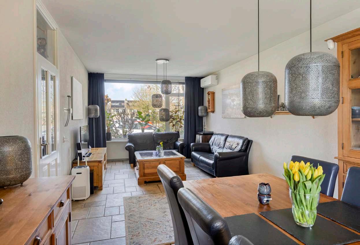 De woonkamer, over de hele lengte van de woning, is een echte blikvanger. Grote ramen laten het daglicht op een mooie manier naar binnen stromen, wat voor een lichte en open sfeer zorgt. Of het nu winter is en je gezellig met een kop thee op de bank zit, of zomer en de airco voor verkoeling zorgt: dit is de plek waar iedereen graag samenkomt.
