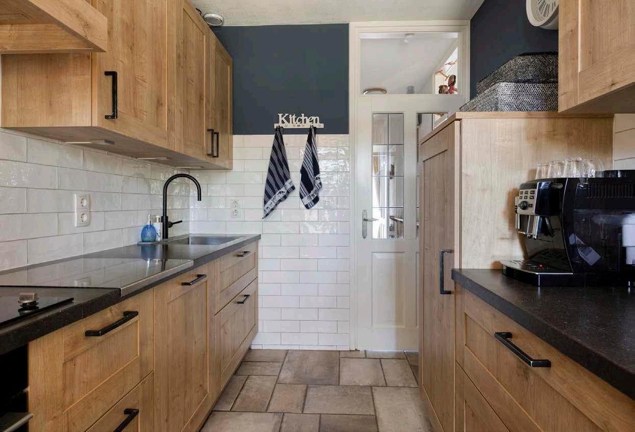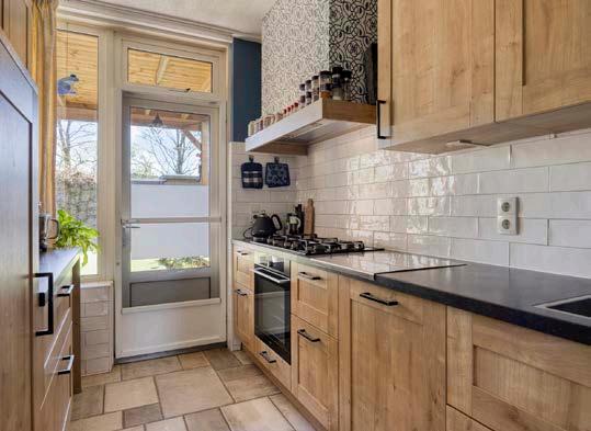 De gesloten keuken aan de achterkant van de woning is netjes en van alle gemakken voorzien. Denk hierbij aan diverse inbouwapparaten die het koken eenvoudig maken. Vanuit de keuken stap je via een doorgang direct de tuin in.