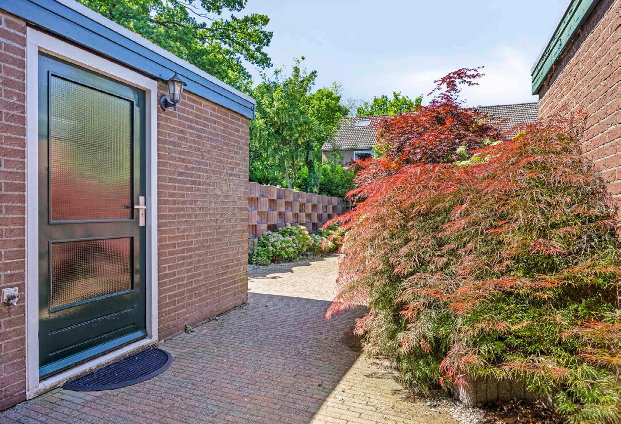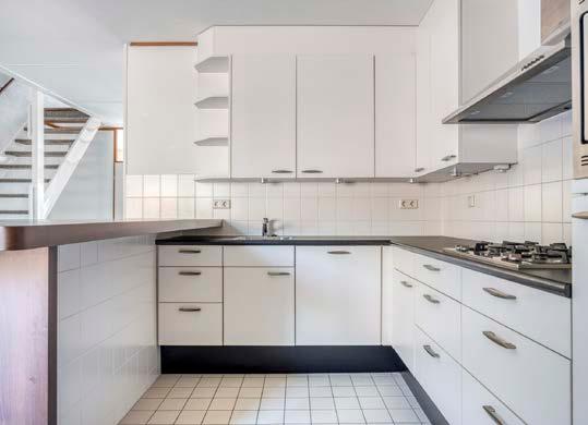 De woonkamer loopt over in de halfopen keuken aan de achterkant. Deze is praktisch ingericht en geeft je genoeg ruimte om een heerlijke maaltijd op tafel te zetten. Vanuit de keuken loop je door naar een kleine hal, waar een toilet is en je toegang hebt tot de tuin.