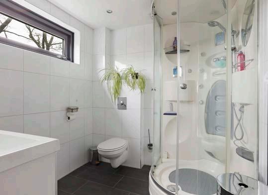 De badkamer is volledig betegeld en heeft een verzorgde uitstraling. De indeling bestaat uit een douche-/stoomcabine, dubbel wastafelmeubel en een tweede toilet.