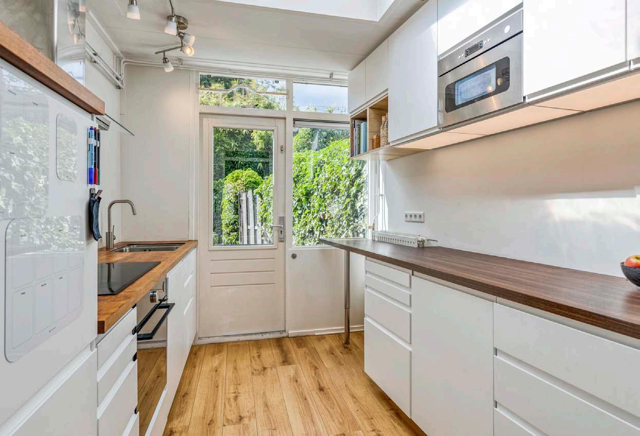 Zeven jaar geleden hebben wij ons huis aan de Sint Janskerkstraat gekocht. We vielen gelijk voor de onverwacht grote ruimte op de eerste verdieping. De afgelopen jaren hebben wij er dan ook met veel plezier gewoond. Je loopt of fietst zo naar de stad en voor een heerlijk diner of zomaar een taartje kun je altijd terecht bij Sugar Hill om de hoek. Omdat we erg van uitgebreid koken houden, hebben we twee jaar na aankoop de keuken helemaal naar onze eigen wens vernieuwd met veel aanrechtruimte, veel kastruimte en de beste inbouwapparatuur.