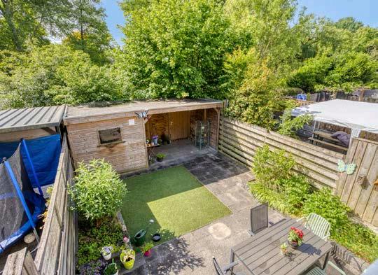 De zonnige achtertuin op het zuiden is een groot pluspunt van deze woning. Hier geniet je van een plek waar je van de eerste ochtendzon tot de laatste avondstralen heerlijk kunt vertoeven. De tuin is ruim genoeg voor verschillende zitjes, bijvoorbeeld een prettige loungehoek of een eettafel voor gezellige familiemaaltijden. Het praktische formaat biedt ook de mogelijkheid om een speelplek voor kinderen te creëren of een deel van de tuin in te richten voor groenliefhebbers. Of je nu van een onderhoudsvriendelijke tuin houdt of juist groene vingers hebt, deze buitenruimte heeft alles om het helemaal naar je eigen wens in te richten.