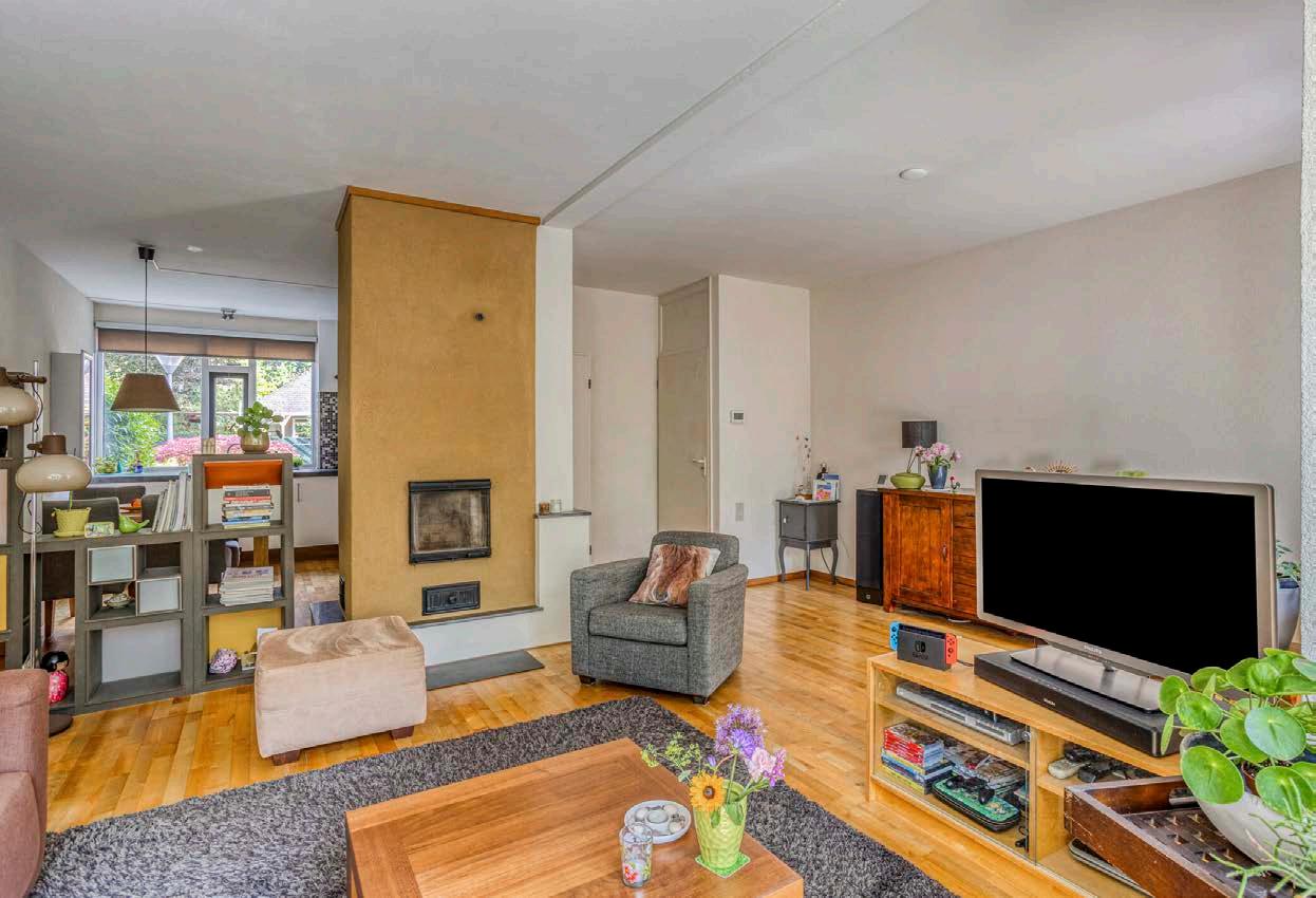 De woonkamer heeft een fijne, lichte uitstraling dankzij de grote raampartijen. Ook vind je de sfeervolle houtkachel die niet alleen functioneel is, maar ook een warme en gezellige sfeer aanbrengt in huis. Wanneer de dagen korter worden en de temperaturen dalen, is dit dé plek om met het gezin of een goed boek neer te strijken. De houtkachel biedt niet alleen extra warmte, maar geeft de woonkamer ook een unieke uitstraling. Of je nu kiest voor een ontspannen avond op de bank of een gezellige avond met vrienden, de houtkachel zorgt altijd voor die vertrouwde, knusse ambiance die bijdraagt aan het echte thuisgevoel. Het is de perfecte finishing touch!