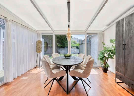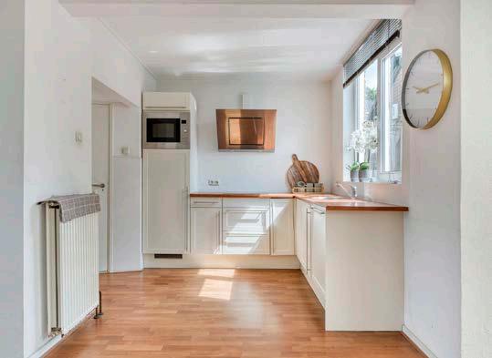 De keuken ligt aan de zijkant van het huis en is voorzien van diverse inbouwapparatuur. Aangrenzend vind je een fijne eetkamer. Hier kijk je uit over de royale tuin terwijl je geniet van een maaltijd of een kopje thee. De eetkamer is een prima plek voor lange, gezellige avonden met familie of vrienden.