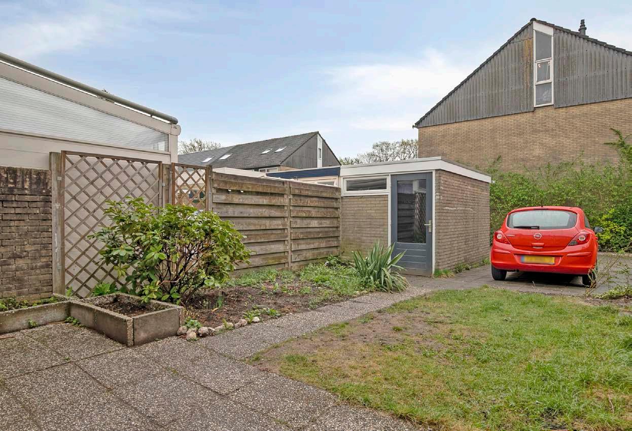 De achtertuin is een fijne plek van rust, gelegen op het zuidoosten, waardoor je de hele dag door van de zon kunt genieten. De tuin biedt voldoende ruimte voor een eetgedeelte, zodat je op warme dagen heerlijk buiten kunt dineren. Dit is de perfecte plek voor een ontspannen zondagochtend met een kop koffie, of om ‘s avonds te genieten van een barbecue met vrienden. Kinderen kunnen zich hier prima vermaken. In de achtertuin bevindt zich een vrijstaande stenen berging en een eigen parkeerplaats.