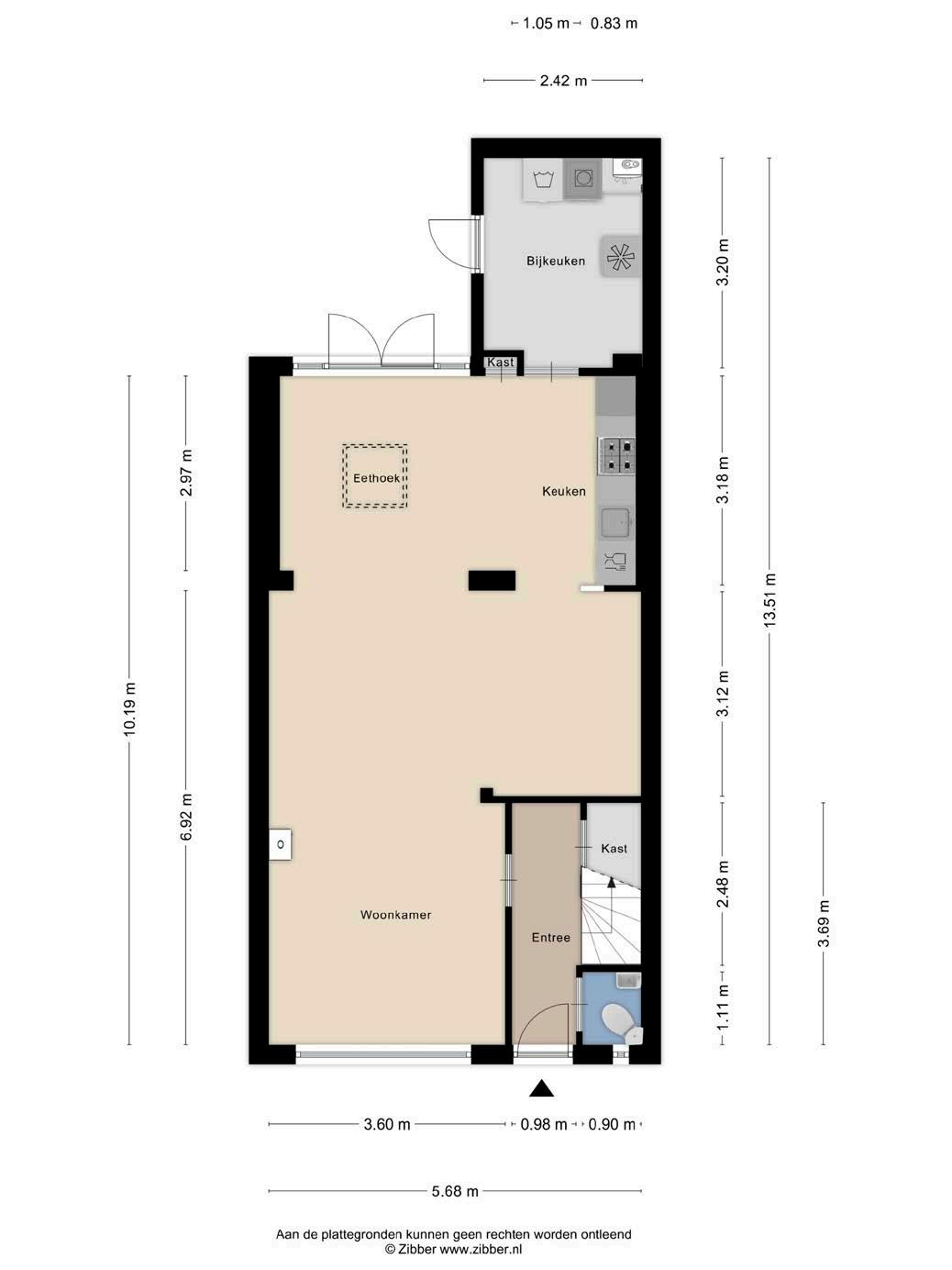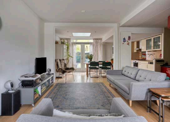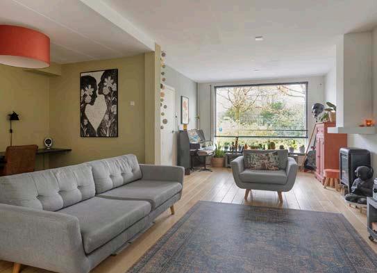 Bij binnenkomst tref je een hal met garderobe, de trapopgang naar boven en een toilet. Vanuit de hal loop je de lichte woonkamer binnen, die aan de voorzijde van de woning ligt. Dit is de plek waar je samenkomt: een gezellige plek voor filmavonden op de bank, bordspelletjes met de kinderen en etentjes aan de ruime eettafel. Door het grote raam aan de voorzijde valt veel natuurlijk licht naar binnen, waardoor de ruimte fris en uitnodigend oogt.