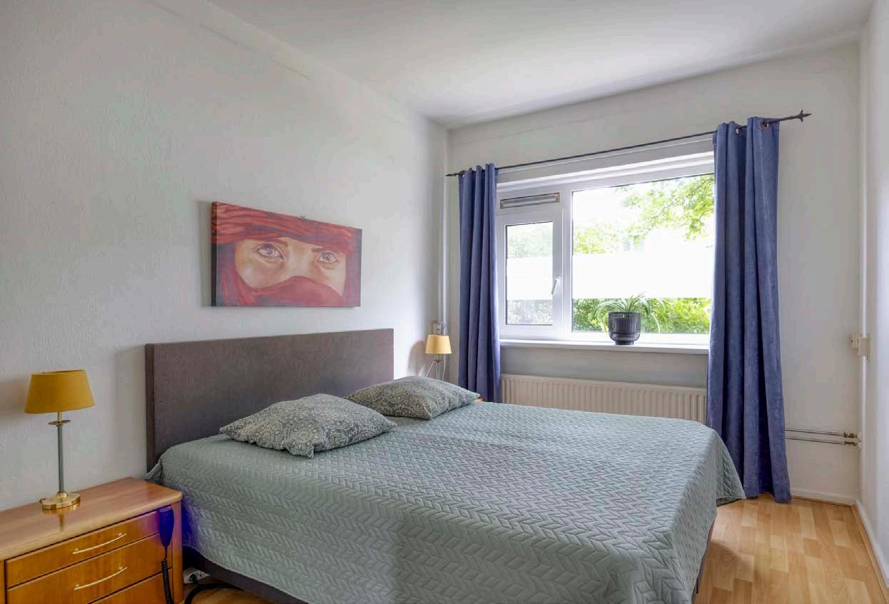Aan de achterzijde van het appartement bevinden zich twee slaapkamers. Beide kamers zijn voorzien van daglicht en hebben een prettige indeling. De hoofdslaapkamer biedt ruimte voor een tweepersoonsbed en een kledingkast. De tweede kamer is ideaal als kinderkamer, thuiskantoor of logeerkamer. De afwerking is neutraal gehouden, waardoor je ze eenvoudig naar eigen wens kunt inrichten.
