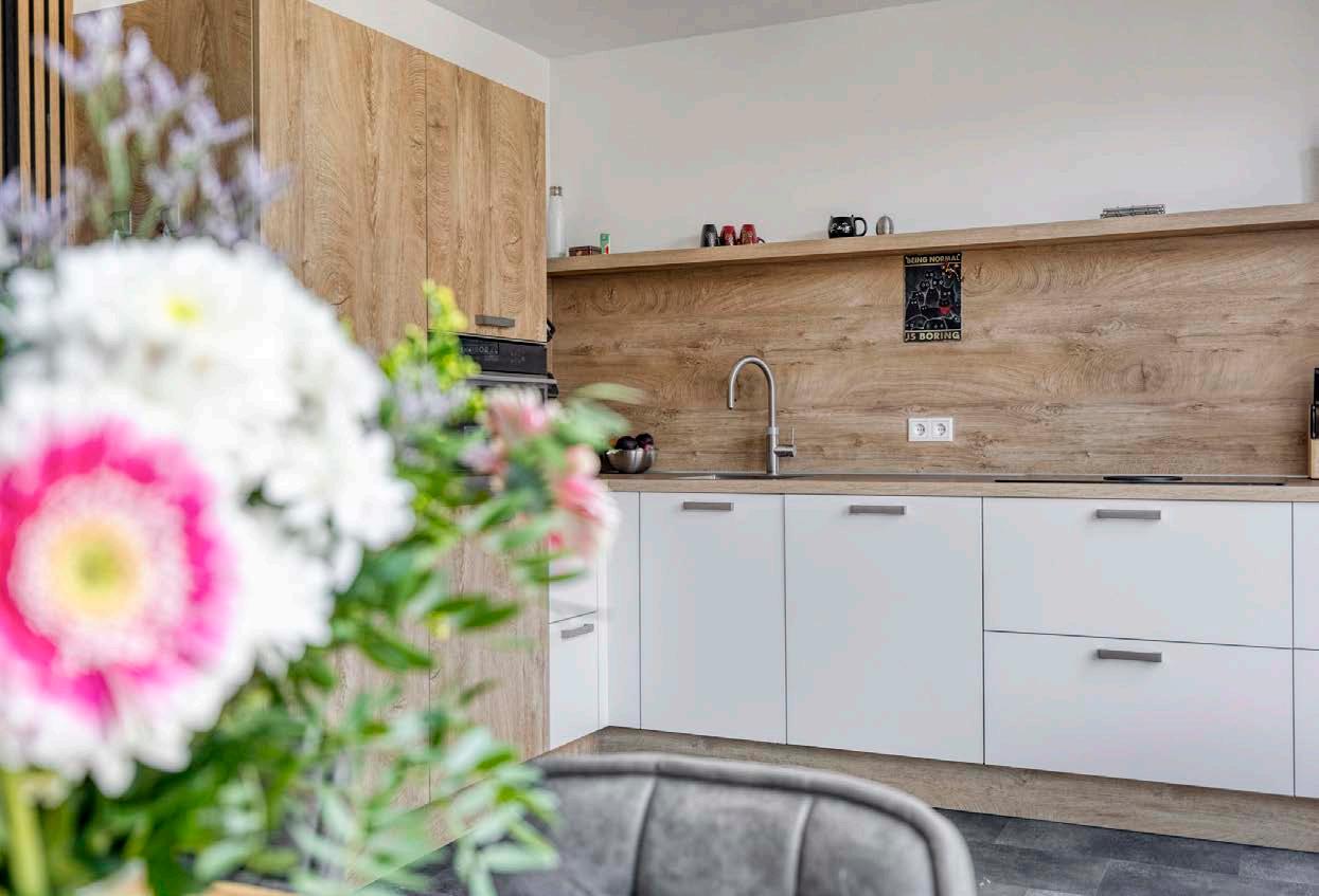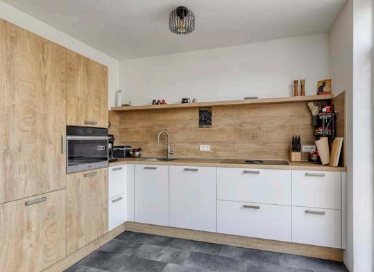 De keuken is werkelijk een plaatje. Gloednieuw, stijlvol en voorzien van de nieuwste snufjes. Denk aan een moderne inductiekookplaat, een vaatwasser die het denkwerk van je overneemt, en een oven voor al die fijne weekendgerechten. Maar het is niet alleen praktisch; de keuken ademt ook sfeer. Of je nu een snelle doordeweekse maaltijd maakt of uitgebreid gaat koken met vrienden, dit is een plek die uitnodigt tot gezelligheid – én lekker eten.
