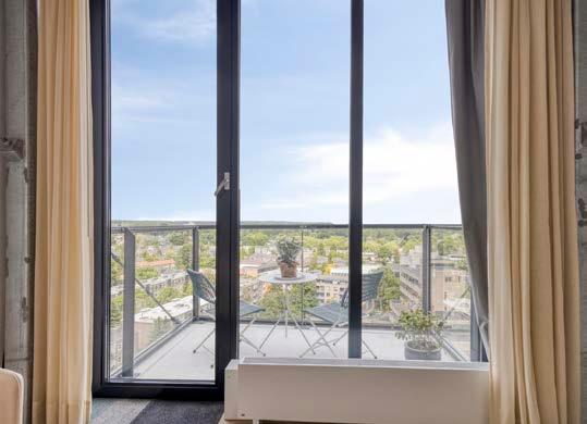 Er zijn maar 2 extra grote “city appartementen” van zo een 70 m2 met dubbele ramen in de woonkamer en een groen uitzicht op Oost. Ik heb hier bewust voor gekozen en geniet er elke dag van. Even snel boodschappen halen of trainen? De inpandige Albert Heijn op -1 en de Gym Society zijn heel handig met thuis werken. Sporten in de omgeving? Het mooiste buitenzwembad is om de hoek in Klarendal, in de groene parken en de Posbank of Hoge Veluwe (mountain)biken, hardlopen of wandelen. De gezellige terrasjes van het Modekwartier zijn op 5 minuten en de binnenstad 20 minuten lopen.