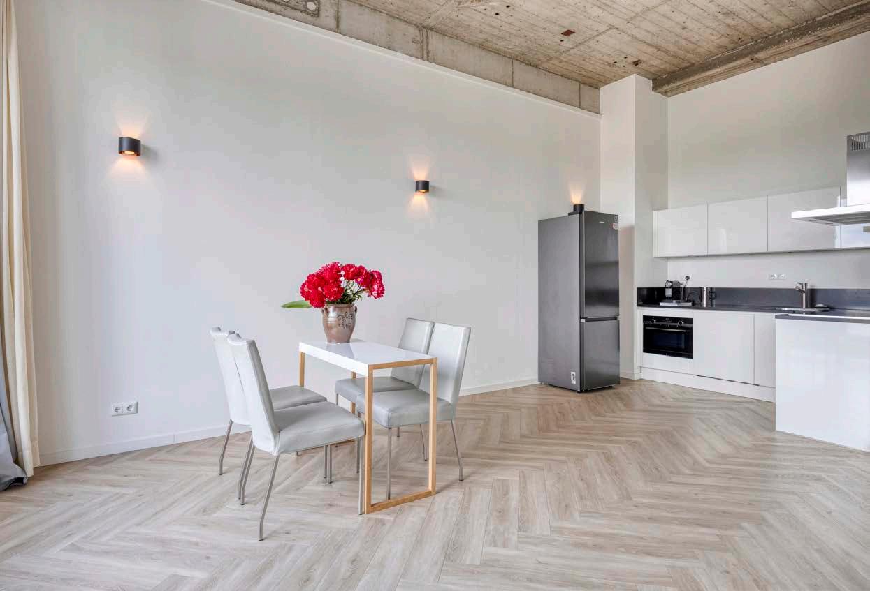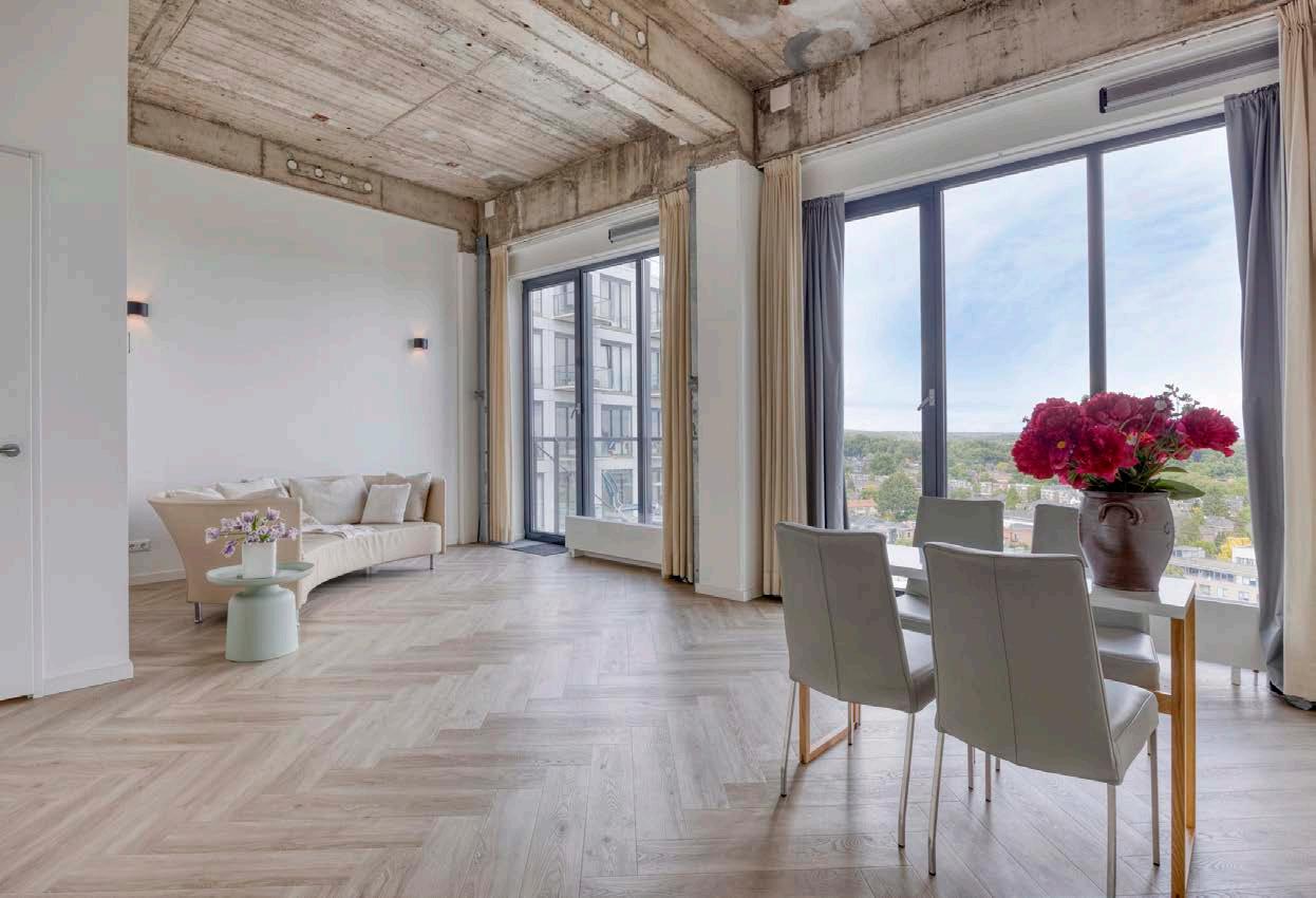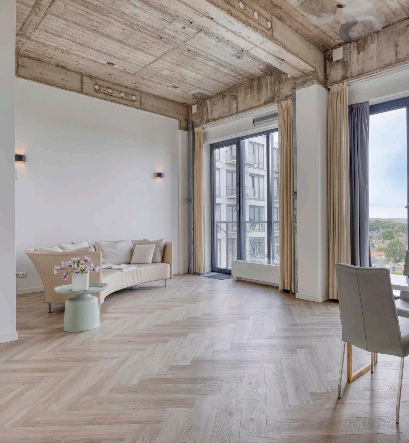 De inrichting voelt aan als een luxe loft, met een mooie combinatie van industrieel en modern wonen.