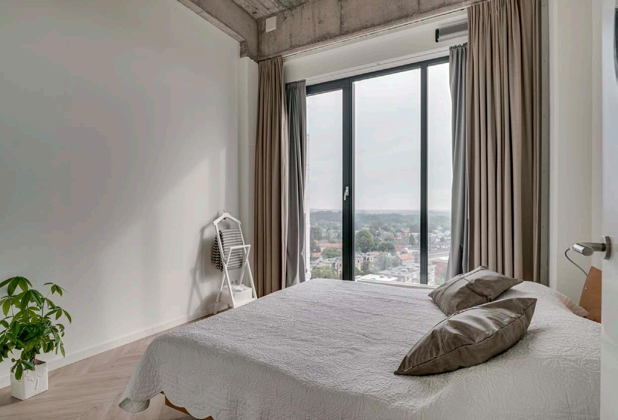 Er zijn maar 2 extra grote ¨city appartementen¨ van zo een 70 m2 met dubbele ramen in de woonkamer en een groen uitzicht op Oost. Ik heb hier bewust voor gekozen en geniet er elke dag van. Even snel boodschappen halen of trainen? De inpandige Albert Heijn op -1 en de Gym Society zijn heel handig met thuis werken. Sporten in de omgeving? Het mooiste buitenzwembad is om de hoek in Klarendal, in de groene parken en de Posbank of Hoge Veluwe (mountain)biken, hardlopen of wandelen. De gezellige terrasjes van het Modekwartier zijn op 5 minuten en de binnenstad 20 minuten lopen.