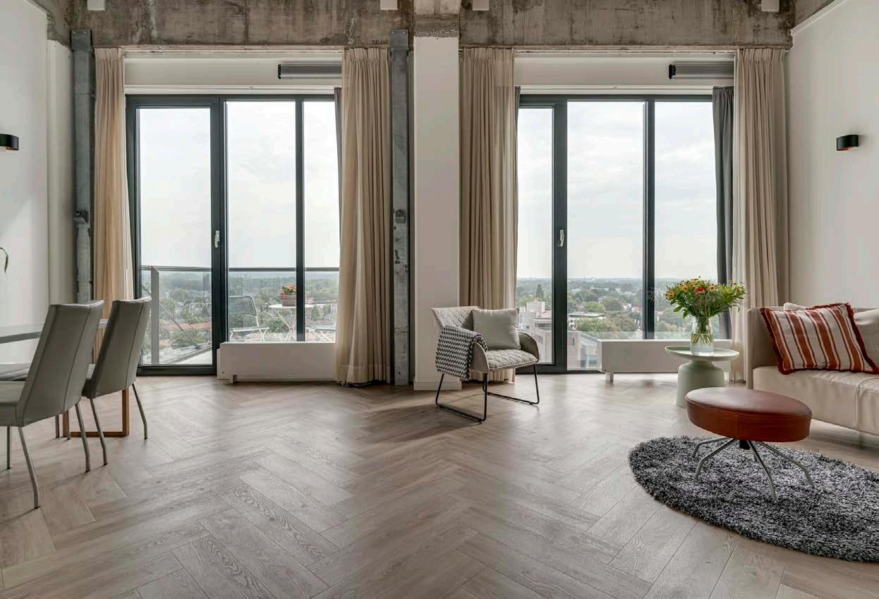 De inrichting voelt aan als een luxe loft, met een mooie combinatie van industrieel en modern wonen.