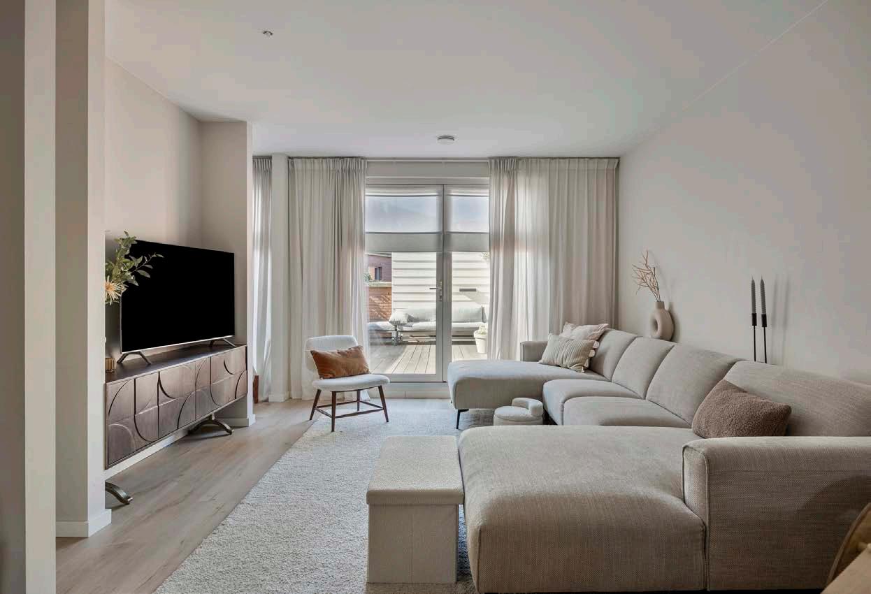 Eenmaal boven bevind je je gelijk in de ruime living. De ruimte is van goed formaat, heerlijk licht en daarnaast ook keurig afgewerkt met neutrale doch strak gestucte wanden en een PVC-vloer waardoor je vrijwel direct kunt beginnen met het uitpakken van de verhuisdozen. De woonkamer bevindt zich een speelse wand met daarachter een fijne werkplek of speelkamer. Creëer een gezellige zithoek vanuit waar je direct uitkijkt op het dakterras, wat een weelde!
