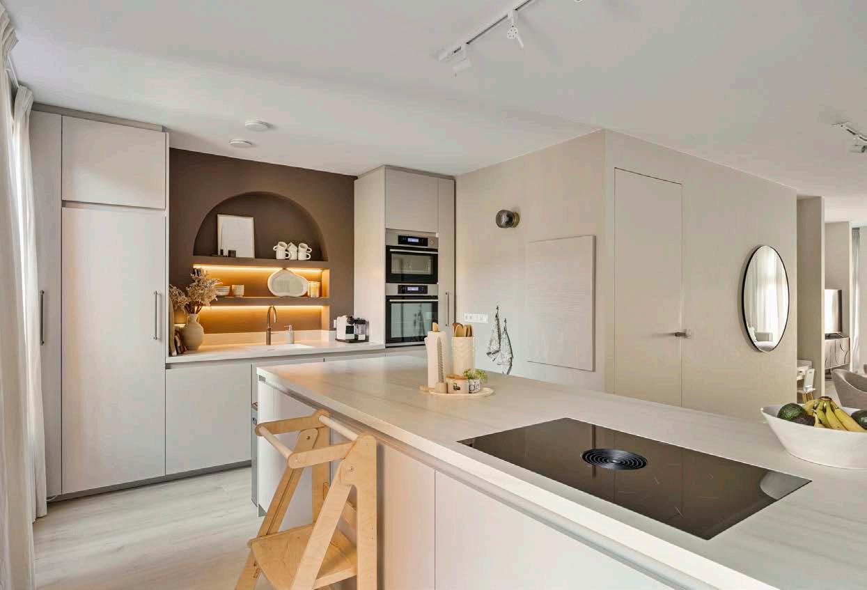 Aan de voorzijde is de luxe open keuken (2023) gesitueerd. Het geheel bestaat uit een wandopstelling met nog een vrijstaand kookeiland. Niet geheel onbelangrijk is dat je beschikt over diverse kasten en lades waardoor je over voldoende kastruimte beschikt. Uiteraard ben je ook voorzien van diverse apparatuur, te noemen een inbouw vaatwasser, koel/vriescombinatie, Quooker, combi-oven en een Bora inductiekookplaat. Dankzij de open verbinding met de woon- en eetkamer ben je voortaan nooit meer ver weg van gesprekken die plaatsvinden, ideaal!