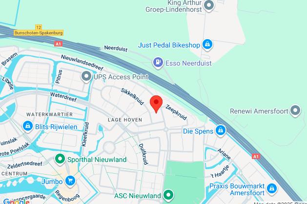 Vanuit Nieuwland ben je binnen enkele minuten op de A1 en A28.