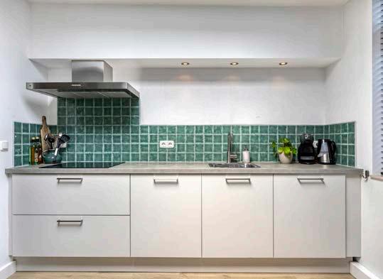 Aansluitend vind je de moderne keuken. Strak, stijlvol en van alle gemakken voorzien – hier kook je in alle comfort een voedzame maaltijd of een uitgebreid diner voor vrienden. De rechte opstelling zorgt voor een praktische indeling, terwijl de inbouwapparatuur (denk aan een oven, vaatwasser en inductiekookplaat) gemak en luxe toevoegt. Een kopje koffie in de ochtend nemen? Dat doe je hier met uitzicht op je eigen tuin, terwijl de zon langzaam opkomt.