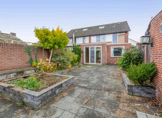 Buiten beschik je over een achtertuin met een ligging op het noorden. Dit betekent dat je altijd kunt kiezen tussen een zonnige of schaduwrijke plek. Tegelijkertijd biedt de tuin voldoende privacy om in een rustige setting van buiten te genieten. Ook is er directe toegang tot de garage, wat het opbergen van fietsen en tuingereedschap extra handig maakt.