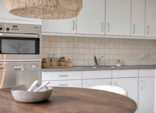 Grenzend aan de woonkamer ligt de open keuken. De nette keuken is goed onderhouden en voorzien van de benodigde inbouwapparatuur. Naast de keuken bevindt zich de bijkeuken met aansluiting voor je wasmachine en extra opbergruimte voor bijvoorbeeld schoonmaakspullen of voorraad.