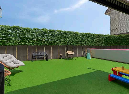 Aan de voorzijde bevindt zich het zitgedeelte, terwijl je aan de achterzijde dineert met uitzicht op de tuin.