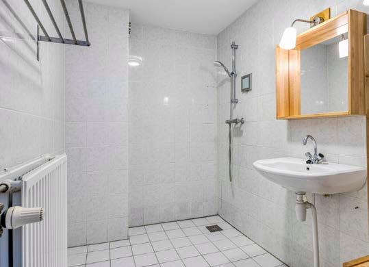 De badkamer is voorzien van een inloopdouche en een wastafel.