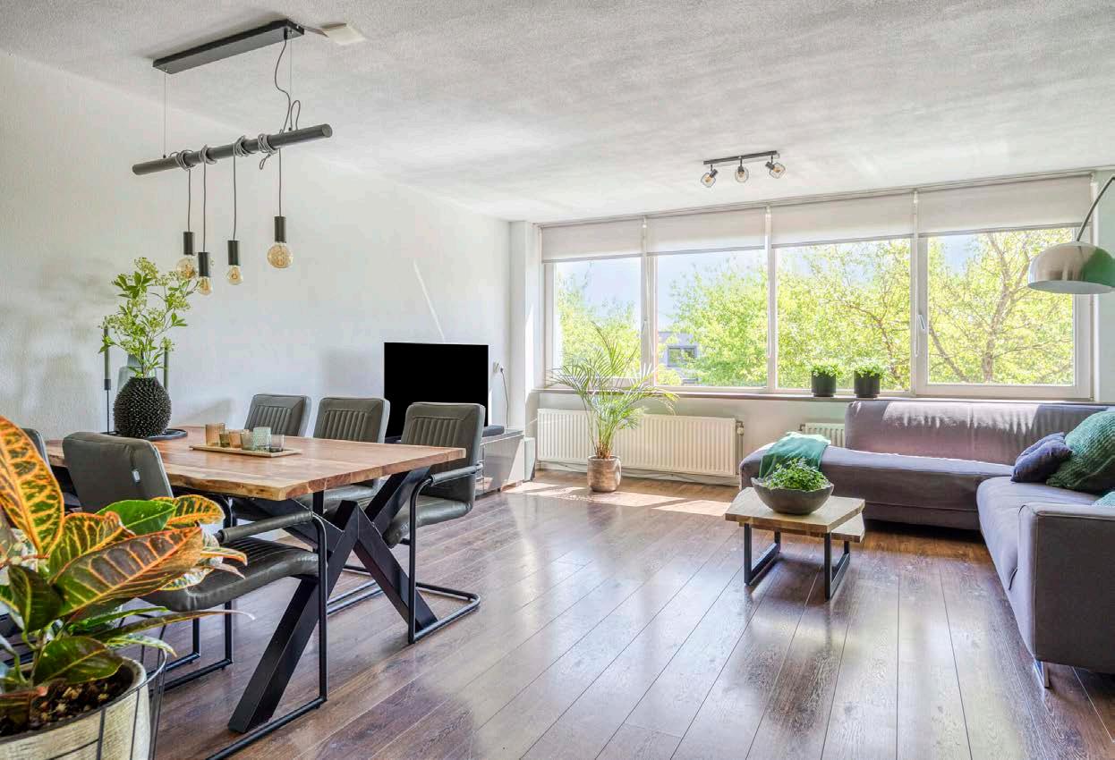 Dit is een ideale ruimte om tot rust te komen of juist met vrienden en familie te genieten. De laminaatvloer geeft de ruimte bovendien een strakke look.