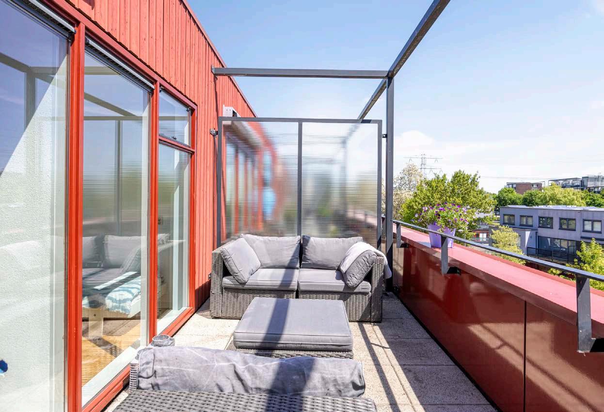 De tweede verdieping biedt twee multifunctionele slaapkamers, waarbij één directe toegang geeft tot het ruime dakterras. Dit dakterras is een waar verlengstuk van je woonruimte; het is een buitenruimte waar je kunt genieten van privacy en prachtig groen uitzicht. Of je nu ontspant met een kop koffie of een borrel, deze plek zorgt voor de ultieme woonsensatie.