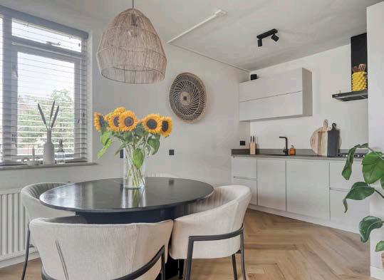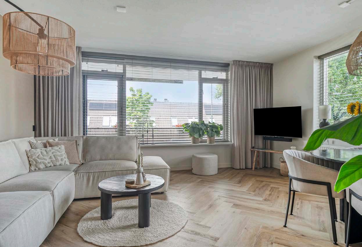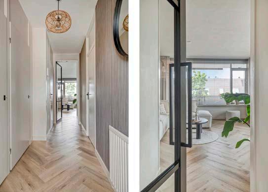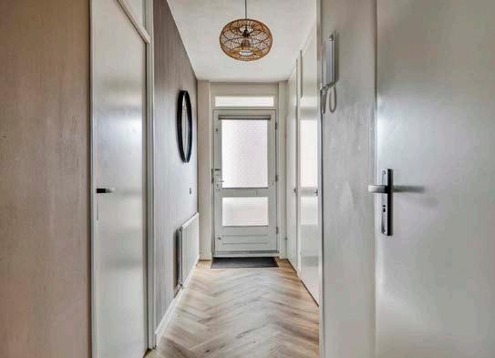 De hal verwelkomt je en geeft toegang tot alle ruimtes in de woning. Via de hal kom je meteen bij twee handige bergkasten, waar je eenvoudig je spullen kwijt kunt. De woonkamer voelt licht en uitnodigend door de grote ramen. Hier creëer je een fijne ruimte om lekker te ontspannen en kun je met gemak zowel een gezellige zithoek als een eethoek plaatsen.