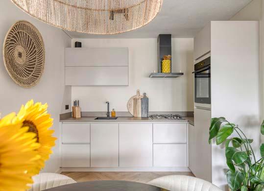 De open keuken – vernieuwd in 2023 – zorgt ervoor dat koken en genieten moeiteloos samengaan. De keuken is strak en modern afgewerkt en voorzien van alle nodige apparatuur.