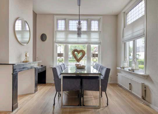 De voordeur brengt je naar een nette hal, die toegang biedt tot de lichte woonkamer. Deze woonkamer is heerlijk ruim en dankzij de grote ramen en openslaande deuren naar de tuin valt er veel natuurlijk licht naar binnen. De eetkamer, een aparte, maar prettige ruimte met karakteristieke deuren grenzend aan de woonkamer, maakt het een plezier om uitgebreid te dineren met het gezin.