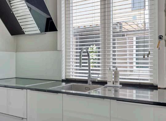 De dichte keuken is praktisch ingericht en voorzien van inbouwapparatuur. Hier heb je de ruimte om lekker te koken.