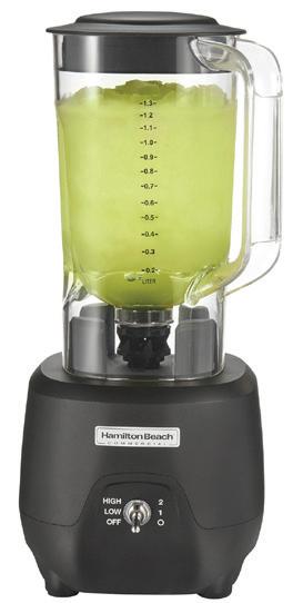 Les commandes robustes et intuitives réduisent le temps d’apprentissage, améliorent la prise en main et résistent aux mélanges successifs. La commande à vitesse variable permet d’obtenir une gamme complète de textures précises. Le ventilateur de refroidissement avancé assure une fiabilité optimale pendant les heures de pointe. L’interrupteur marche/ arrêt revient automatiquement en position neutre. Récipient transparent de 64 oz à impact élevé. Moteur de 3 HP de puissance de pointe. 120 V. 50/60 Hz. 13A.